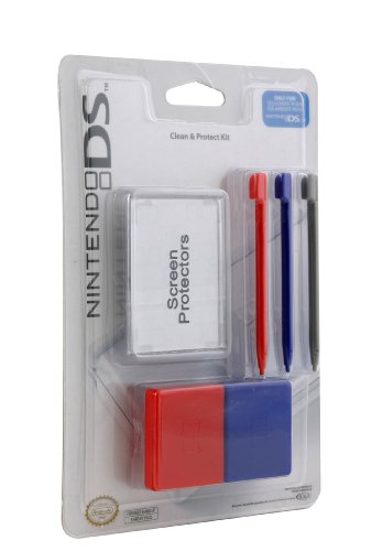 The Clean & Protect Kit has all the essential items you need to protect your Nintendo DS Lite and maintain the highest quality game experience. Includes three replacement stylus, two game card cases, two screen protectors, and a cleaning cloth. Step up your game with this POWER A 100% Authentic Clean & Protect Kit, Officially Licensed by Nintendo. Available in Grey/Red, Blue/Red, Pink/Purple, or Green/Yellow. Nintendo DS Lite Game Cards sold separately.