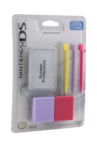 The Clean & Protect Kit has all the essential items you need to protect your Nintendo DS Lite and maintain the highest quality game experience. Includes three replacement stylus, two game card cases, two screen protectors, and a cleaning cloth. Step up your game with this POWER A 100% Authentic Clean & Protect Kit, Officially Licensed by Nintendo. Available in Grey/Red, Blue/Red, Pink/Purple, or Green/Yellow. Nintendo DS Lite Game Cards sold separately.