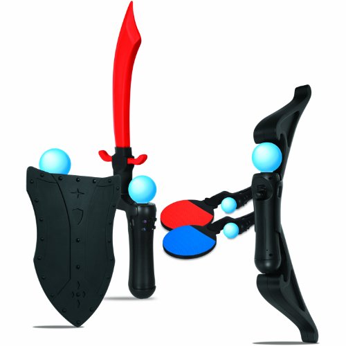 Includes 2 Table Tennis Paddle extensions, Archery Bow, Sword extension, Shield and two Remote Cradles for multiplayer action. Also includes the Boxing Gloves, Quad Dock Pro, Motion Blaster, 2 Wrist Straps and 1 Charging Cable to maximize the PlayStation MOVE.