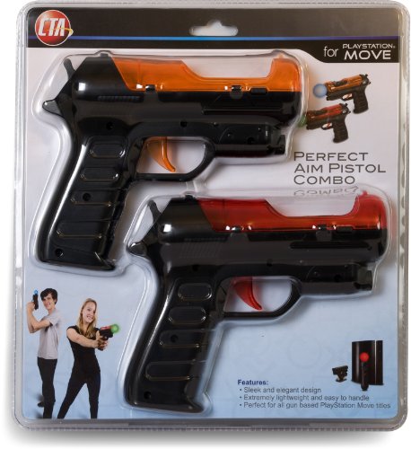 Looking for some fun and futuristic firearms to accompany those two-player gun-based Move games? Look no further than the Perfect Aim Pistol Combo for PlayStation Move! The sleek and elegant design features stylish orange and red highlights and a smooth matte finish, making the guns easy on the eyes and hands. The bodies are also made of an extremely lightweight material, so the fatigue that usually accompanies light-gun based controllers is a thing of the past. Simply insert Move Motion Controllers into the housing and both players are good to go! Package Includes: (1) Black and orange Perfect Aim Pistol and (1) Black and red Perfect Aim Pistol.