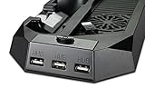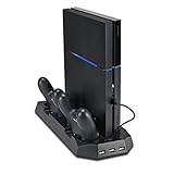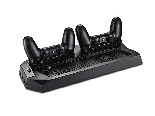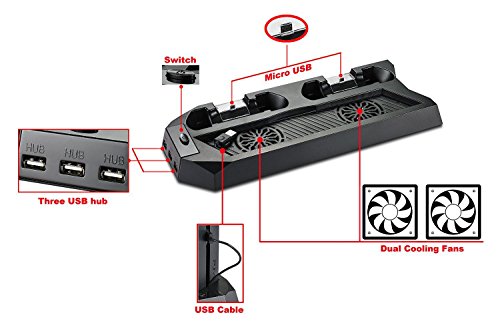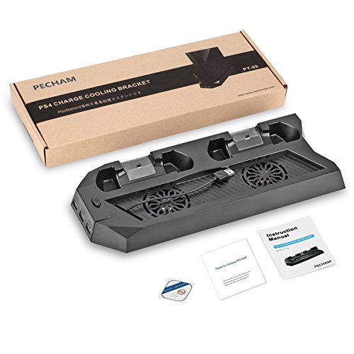 PS4 Cooler, PECHAM PlayStation 4 Console Vertical Stand Cooling Fan Charging Station, Dual Micro USB Charger Ports for DualShock 4 Controllers and PS4 Charger Docking Station HUB Charger Ports by PECHAM