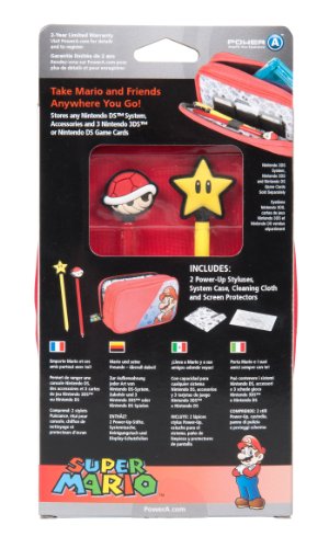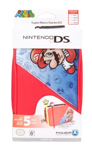 DescriptionIt's you and your Nintendo DS on the go with Mario and Co.! This Super Mario Starter Kit stores any Nintendo DS system, including Nintendo 3DS, in a cushy zip case. Choose from colorful Mario, Peach or Yoshi designs. Plus, there are 2 Power-Up Styluses, a Cleaning Cloth and Bottom Screen Protectors. Features