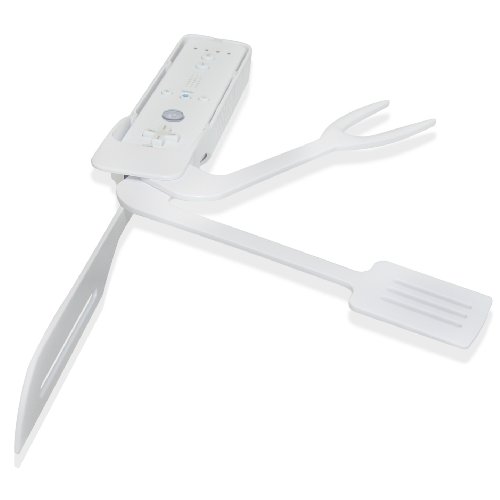 CTA DIGITAL WI-CMK Cooking Mama Kit for Wii. This dual set of controller holders is a virtual chefs dream. One holder is shaped in the mold of a frying pan while the other is a combination of a spatula, a knife and tongs, so you can fry, flip, cut and stab any one of your favorite dishes. For the handle with the multiple utensils, just keep the one that you wish to use erect while sliding the others to the side of the handle and you are ready to go. In the handle a cut out mold that cradles your Wii remote so that you are ready to point and cook.