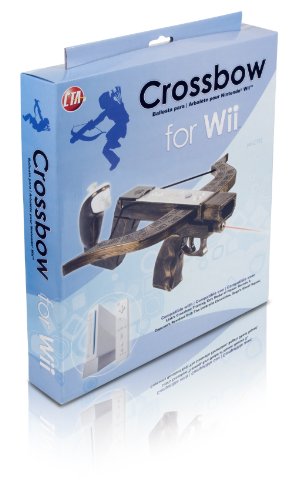 CTA DIGITAL WI-CTG Crossbow Gun for Wii. Prepare your positioned bow, set your laser guided aim and release virtual arrows with the Crossbow for Wii from CTA Digital. This plastic Crossbow gun possesses a convincing mold and color scheme, with spiral decals reminiscent of the ancient eras. To operate, place the Wii Remote in the top cradle of the crossbow and the Wii Nunchuk in its outer grip. After attaching the controllers, manage the wire between them by running the cable along the groove in the outer edge of the Nunchuk grip. Contain the wire inside a sealable compartment and close the top cover onto the Wii Remote. An infrared laser beam is located beneath the barrel for pinpoint accuracy. Outfitted with all these features, this heroic piece of classic video game weaponry is ready to inflict epic havoc