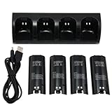 CommonByte For Nintendo Wii Black 4 Dock Charging Charger Station with 4 Batteries by CommonByte