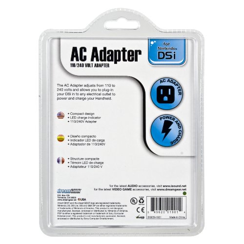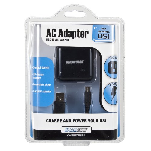DescriptionPowers and charges your DSi. Automatically adjusts from 110 to 240 volts and allows you to plug in your handheld to any standard electrical socket, providing you with power while charging. You can also charge your handheld from any powered USB port. Features