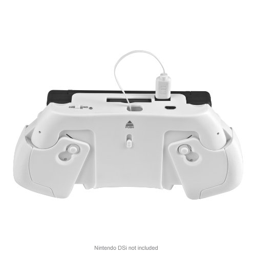 This rechargeable, retractable grip adds the feel and comfort of a full size controller to your DSi. The rechargeable battery allows hours of extended game play after your DSi battery runs out of power. This accessory extends horizontally to adapt to the width of your Nintendo DSi, securing it while giving the user complete comfort and control during use. To operate, insert the DSi unit into the grip opening, securing it to the fasteners. Located under the grip are two buttons, which will lengthen the width of the grip. Once finished, disconnect the cable from the unit and simply push the switch forward and the cord retracts right back into its compartment. To recharge the grip, insert a DSi charging cable into the cable slot (right by the retractable cable) and charge for 2 hours. Specifications • Retractable grip with built-in rechargeable battery • Input voltage: DC5V, Input Current: 900MA, • Battery capacity: 2600MAH