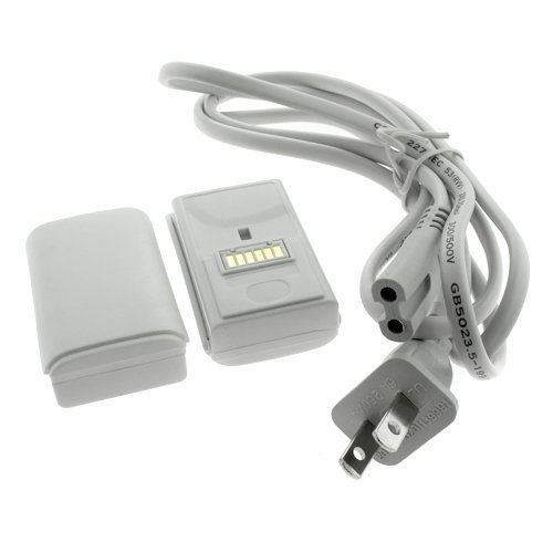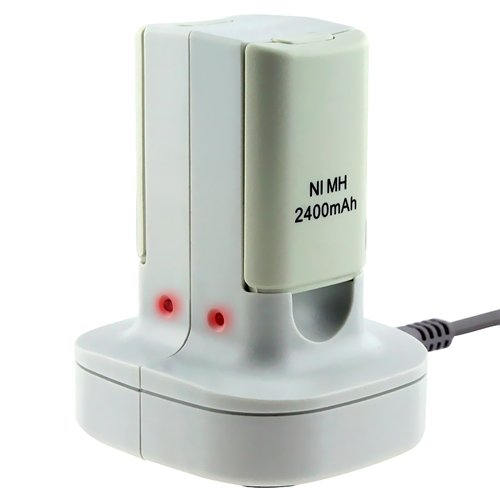 DescriptionFor Microsoft Xbox 360 Controller Charger Dock–Brand new generic charger dock.Quantity: 1.Never run out of battery power when you are about to score the winning point.Save money and protect the environment by using the rechargeable battery.Docks both of your rechargeable batteries.LED light indicator shows the batteries charging status.Battery Charger: Input: 110 ~ 240V AC / Output: 2.8V DC.Battery not included.For Microsoft Xbox 360 Controller Rechargeable Battery +Cable–Brand new generic battery + cable.Two Rechargeable Ni-MH batteries.High quality AC power cord. Features