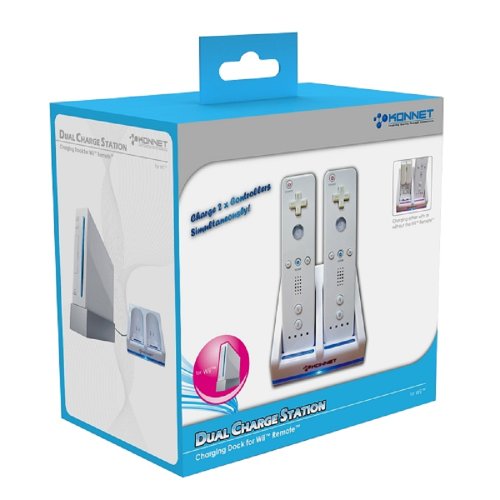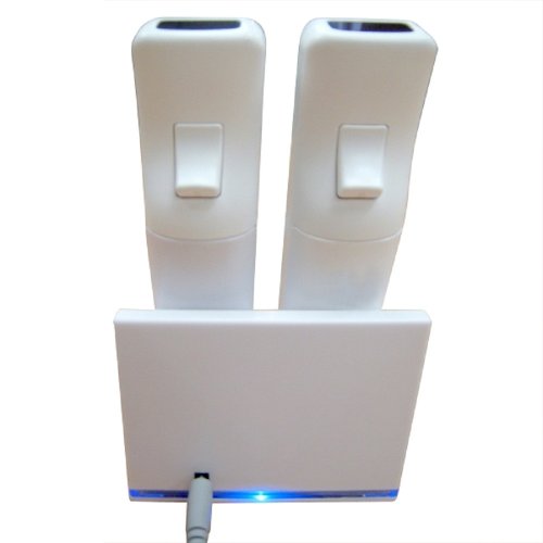 DescriptionTrendy Design: Includes two rechargeable battery packs customized for your Wii Remote Batteries charging without connect to your Wii Remote Each rechargeable battery pack provides up to 20 hours of game time, and can be recharged up to 500 times Charge status glow LED indicators on the either side of the Station indicate when the Remote is being charged (to flash) and when it is fully charged (Green) Just plug in the included USB cable from the base to your Wii and you're ready to game Features