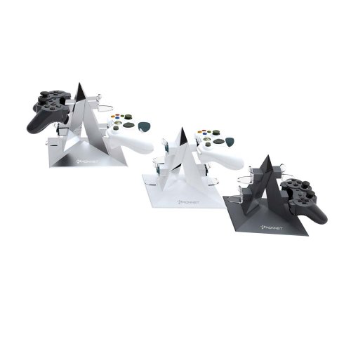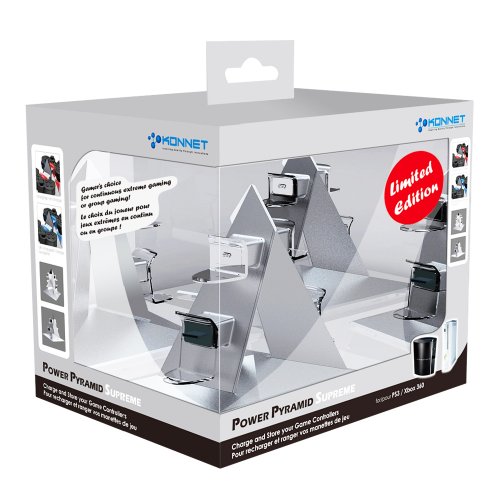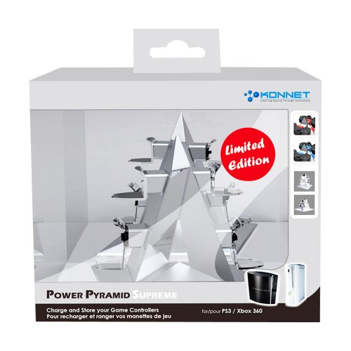 DescriptionThe KONNET Power Pyramid is stylish charging station for the Microsoft XBox 360 and Sony PlayStation3 wireless controllers. It is equipped to charge up to 4 remote controllers at one time with LED charging status indicators. The pioneering rhombus-shaped mechanical design reflects its heavy metallic-like style and goes beyond common charging capability. In addition to it's charging capabilities, the KONNET Power Pyramid is truly a conversation piece which will be the envy of others. Features