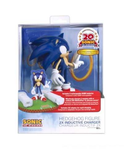 Celebrate Sonic's 20th Anniversary with the limited edition, individually numbered Figure Inductive Charger! Mad Catz' Hedgehog Figure 2X Inductive Charger combines videogame history's fastest running hedgehog with the modern-day convenience of contactless controller charging. Standing 6 inches tall atop a plateau representative of the classic Green Hill Zone, Sonic the Hedgehog guardedly watches over your Wii Remotes as they revitalize. Built-in magnets help ensure controllers and battery packs are aligned in the most efficient charging position, while twin rechargeable NiMH battery packs energize rapidly to provide up to 15 hours of gameplay. With innovative electromagnetic induction technology providing the means to charge Wii Remotes without the need to remove protective silicone covers or Wii MotionPlus add-ons, the Hedgehog Figure 2X Inductive Charger delivers the utmost in hassle-free charging.
