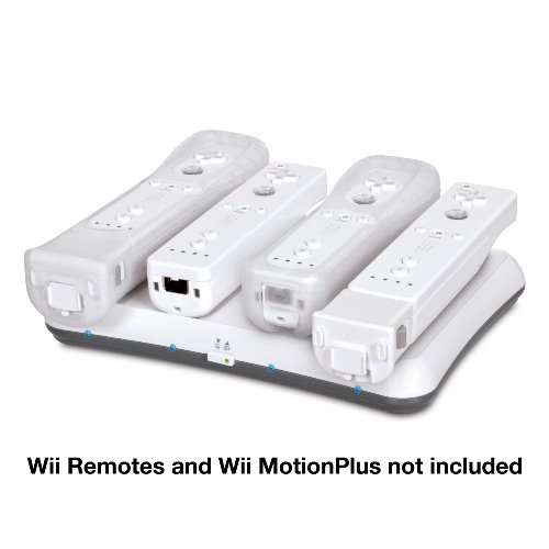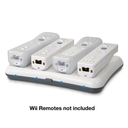 The Wireless Charing Power Base sends a wireless charging signal directly to your Wii Remote every time you place it on the unit. You can charge up to 4 Wii Remotes simultaneously, even with silicone sleeves covering them. You can also charge the Rechargeable Battery Packs by themselves. The Power Base features LED charge indicators that tell you your Wii Remote's charging status. It is powered by an included 110/240V AC Adapter, so you're no longer limited to charging near your Wii console's USB port. With 4 Rechargeable Battery Packs included, the Wireless Charging Power Base Quad is the perfect charging solution for your Wii Remotes.