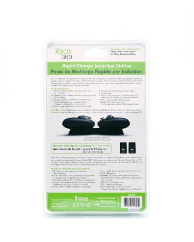DescriptionThe Rapid Charge Induction Station is the most convenient, cost-effective and technologically advanced charging station available for the Xbox 360 console. Designed to charge one or two Xbox 360 controllers, the Rapid Charge Induction Station uses inductive charging that allows the user to recharge each battery without having to remove the battery pack from the controller. Kit Includes: Rapid Charge Induction Station, 2 Rechargeable Lithium-Polymer Batteries, USB Charge Cable. Features