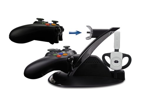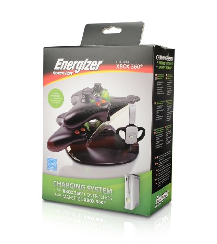 DescriptionCharge two Xbox 360 controllers simultaneously in just 2.5 hours with Energizer's Power & Play Charging System. Fully compatible with Microsoft’s Xbox 360 rechargeable battery (not included)! The charge base offers a sleek and unique design that is impressive and functional. The station let’s you know when it’s charging via the connection by appearing in red light (charging) and green (fully charged). It is powered the by the included UL-approved AC power cord. Keep those controllers charged and get back in the game with fully licensed Energizer Power & Play Charging System for the Xbox 360 by PDP. Charge system may not be compatible with non-Microsoft or non-Energizer rechargeable batteries. Features