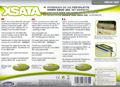 Datel's Xsata easily connects an Xbox 360 to your PC with a fast USB 2.0 connection. Store valuable game information right on your PC's hard drive. Save your game information without worry and never run out of space again. The Xsata is conveniently compatible with Xbox 360 file manager software, including Xplorer 360. There's even a blue laser to provide a cool, edgy look.
