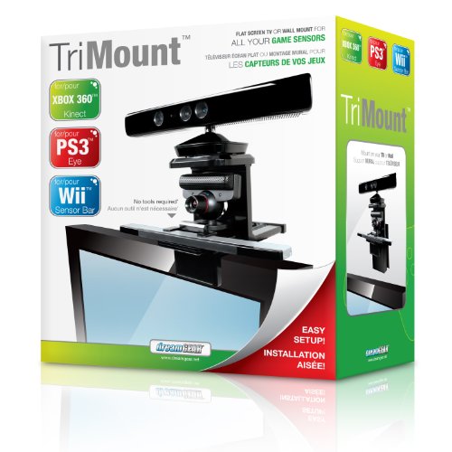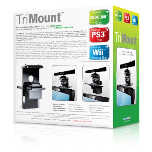 The TriMount is the all-in-one solution for the ultimate gamer. The TriMount fits the Xbox 360 Kinect Sensor, PlayStation Eye and Wii Sensor Bar firmly and securely on top of your flat screen TV. This specialized mount includes an adjustable screw that allows you to fit most flat screen TVs. In addition, an optional wall mount is included to allow maximum flexibility to stay organized. Keep the top of your TV from being cluttered with all the cameras and sensors. Have a clean look with the TriMount by dreamGEAR.