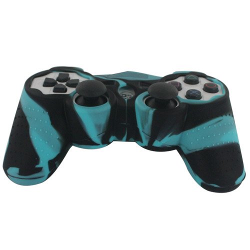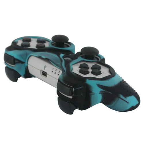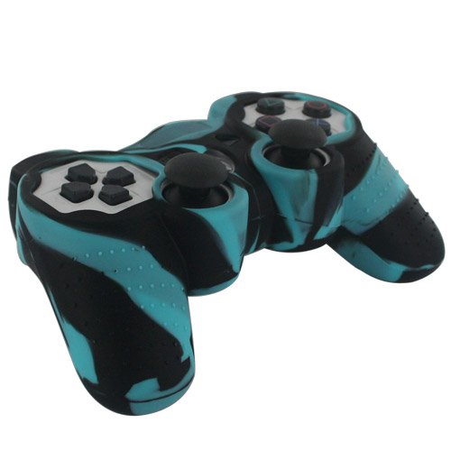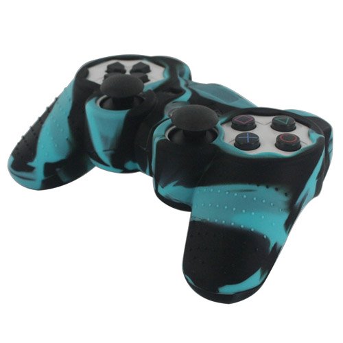 Skque Silicone Soft Protective Case Cover for Sony PlayStation 3 Controller, Camo Pattern, Black, Blue by Skque
