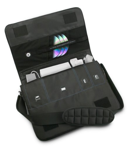 DescriptionCarry all of your gaming items with you in your Wii Messenger Bag! Stylish, sleek design with thick padding safely transports and stores your Wii system, Wii Remote, Nunchuk, Sensor Bar, power cords, games and accessories. The durable non-slip rubber handle is ergonomically designed to allow for easy grip and adjustable carrying strap allows for easy transporting of your Wii to parties or friend's house. Officially licensed Nintendo product developed by POWER A. Features