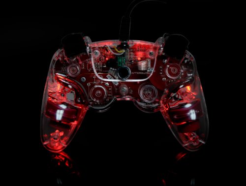 The AFTERGLOW family of controllers breaks new ground in form, features, and radiant aesthetics, delivering gamers an experience sure to have them glowing. The appearance of the AFTERGLOW controllers is defined by clear a polycarbonate body plastic, within which red, blue, or green circuit boards and components reside. Amplifying the theme, multitudes of LEDs within the controllers glow in hues matching the circuit board color. The result is a truly vibrant glow in both light and dark gaming situations. The AFTERGLOW AP.1 for the PS3 features L2 and R2 triggers modeled upon PDP’s popular REAL TRIGGERS add-ons for PS3 controllers. It also provides a refined analog stick location similar to the Xbox 360 style analog stick placement for FPS advantage with an ergonomically modeled grip built for comfort and competition. Each AFTERGLOW controller allows the player to adjust the LED settings to: on, off, or vibration (activates when controller rumble motors spin).