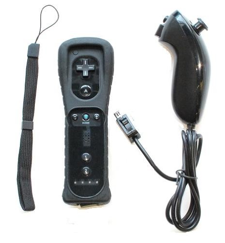 Black Remote & Nunchuck Controller + Wrist Strap + Silicone Case for Nintendo Wii by Neewer