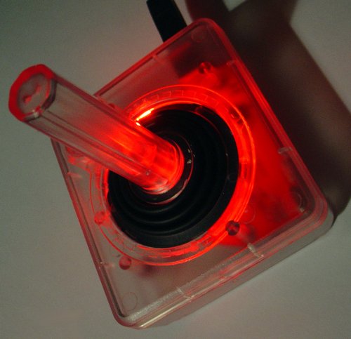 DescriptionThe limited edition Clear Classic USB Joystick lets you enjoy old school gaming on a Mac or PC. We worked with the guys behind the Atari Flashback 2 retro console to recreate this iconic design in transparent plastic. When you plug the stick into your computer's USB port, it lights up with a brilliant red glow that illuminates from the inside out. Even the circuit board at the heart of the stick is red! The Clear Classic USB Joystick is compatible with almost all emulators that runs Atari, Amiga and Commodore software. It even works with MAME and modern games that use a standard USB joystick controller. DIYers will be happy to hear that the USB controller board can be removed from the case and used as a standalone control interface for a MAME arcade cabinet or homebuilt game controller. The board even includes labeled solder points to connect an arcade joystick (4 or 8 way) and up to 2 additional controls. The complete package includes the joystick and a deluxe 6 ft clear USB cable. Features