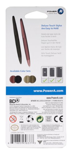 DescriptionThe Touch Stylus Set comes in color palettes that coordinate with the new Nintendo DSi XL colors including Black/Burgundy and Bronze/Dark Brown. Packed in sets of 2. Can be used with any system. Officially licensed Nintendo product developed by POWER A. Nintendo DSi XL game system, games, and accessories sold separately. Features