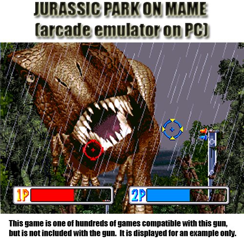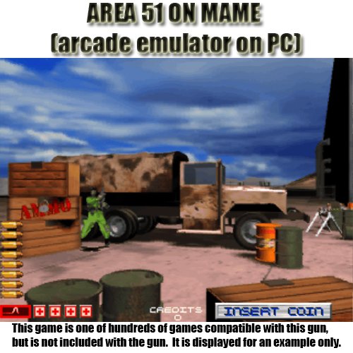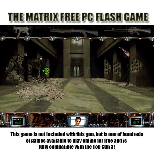 DescriptionThe award winning Top Gun 3 is the best available light gun today! Simply mount the LED receivers on your TV or display (with included easy-to remove putty), connect the blue-tooth wireless adapter into an available USB port, install the drivers and calibrate your gun! You are now ready to play literally HUNDREDS of games from PC to MAME (Multiple Arcade Machine Emulator) to PS2, PS3* or Xbox! With real-time tracking, you can control the cross-hair on screen as you position your gun! This gun is PERFECT for arcade classics like Lethal Enforcers, Area 51, Terminator 2, Jurassic Park as well as modern console games like Time Crisis 3, Starsky & Hutch, Ninja Assult and more! Also works great for hundreds of FREE flash games available online! This is the only solution you will ever need to be in control of classic and modern arcade shooting games! This gun features recoil action, a laser pointer (can be turned on or off), turbo mode and auto-reload (can also reload off screen just like the arcades! Driver support for Windows XP, Vista and Windows 7! Features
