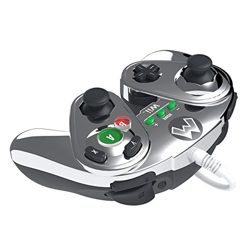 Get a taste of old school gaming with the officially licensed Wired Fight Pad for Wii and Wii U. Inspired by the original GameCube controller, the Wired Fight Pad offers a few updated features to enhance your gameplay. Benefit from the full size right thumb stick, dual shoulder buttons, large ZL and ZR triggers, and a soft touch back plate. Here you have the Metal Mario Wired Fight Pad. With a metallic design and the Mario “M” graphic-enjoy an impressive twist on Mario's classic look.