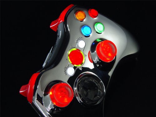 XCM XBOX 360 Wireless Controller Shell with 2 LED analog sticks and new improved D-pad Chrome/Red by Totalconsole