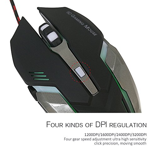 FARSIC 6D optical Gaming Mouse with adjustable 3200 DPI, up to 6 Buttons, 4 Soothing LED Colors Optional for all operating system by FARSIC