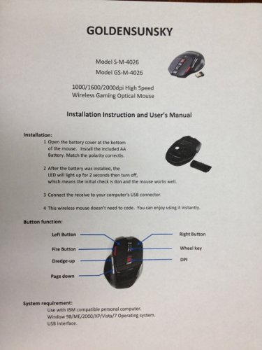 Goldensunsky 1000/1600/2000dpi High Speed Wireless Gaming Optical Mouse with USB Mini Receiver, Plug and Play 2.4ghz