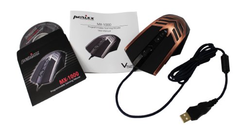 Perixx MX-1000 Copper, Programmable Gaming Mouse – 7 Programmable Button & 5 User Profile – Omron Micro Switches – Gold-plated USB Connector – Braided Fiber Cable – Avago 2000DPI A3050 Optical Sensor – DPI Switch 500-4000 – Ultra Polling 1000HZ by Perixx