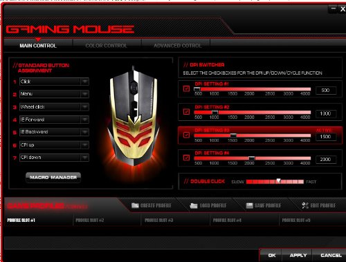 • On-the-fly 4 Level Adjustable DPI Switch 500-4000
