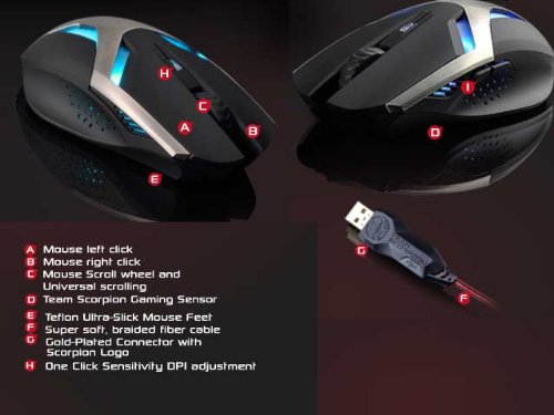 TEAM SCORPION Frost Wyam: Gaming Mouse features USB, scroll wheel, real-time DPI switch (400-2000 DPI) and special grip by TEAM SCORPION