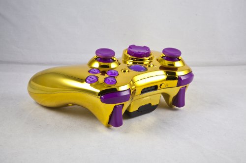 This controller features a unique, GOLD COLORED shell to provide a look like someting you have never seen! We added purple accents. (NOTE: This is not REAL gold, just a gold “look”.)