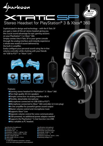 Sophisticated in design and technology – with the X-Tatic SP you gain a state-of-the-art stereo gaming headset giving you the crucial sound advantage for epic gaming sessions on your PlayStation3 or Xbox 360 or PC. Simply connect the X-Tatic SP to your game console through the analog interface and instantly experience a whole new world of sound delivered by the built-in amplifier. Easily configure your personal sound using the in-line volume controller while chatting with your friends via “USB to PS3” or “Xbox Live”.