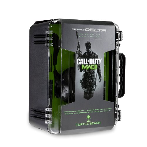 DescriptionThe Turtle Beach Call of Duty: MW3 Ear Force Delta (EFD) Limited Edition headset comes equipped and ready for battle with fully programmable presets, Dolby 7.1 Surround Sound, Bluetooth technology and wireless chat on XBOX 360 and PS3. Featuring exclusive Call of Duty: MW3 customized presets and voice prompts, massive 50mm speakers, an exclusive military textured finish and full supply of bonus MW3 content, the Ear Force Delta is built to let you Hear Everything and dominate. The EFD’s fully-programmable Digital Signal Processor (DSP) allows you to enhance and personalize the entire audio experience with fully customizable game, chat and mic signals. Custom MW3 presets can be selected while gaming to hone in on enemy footsteps, amplify bone-rattling explosions and hear every shell casing hit the floor – all while calling the shots in immersive 360 degree Dolby surround sound. Bluetooth technology puts you in command: chat wirelessly with your squad on XBOX LIVE and PSN, answer mobile phone calls, stream music and never miss out on the action. The EFD is the ultimate “secret weapon” for serious gamers seeking unmatched audio quality and immersion, sonic control and a competitive advantage. If you’re serious about Call of Duty, and all your games, then get serious about the sound and step up to the Limited Edition MW3 Ear Force Delta. Features