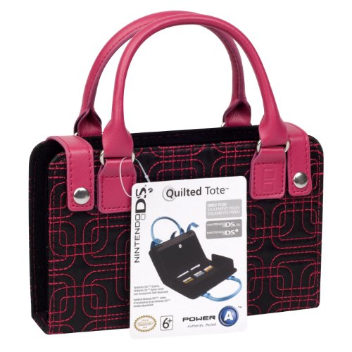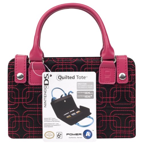 DescriptionPortable gaming has never looked so good! Show off your personal style with this Quilted Tote for Nintendo DSi. This case features a quilted black exterior with velvet-lined interior compartments to hold and protect your Nintendo DSi. Tote your game system, up to 3 Nintendo DS Game Cards and a replacement stylus in this unique bag. Available with Blue, Purple, Pink, or White stitching. Officially licensed Nintendo product developed by Power A. Nintendo DSi game system, games and accessories sold separately. Features