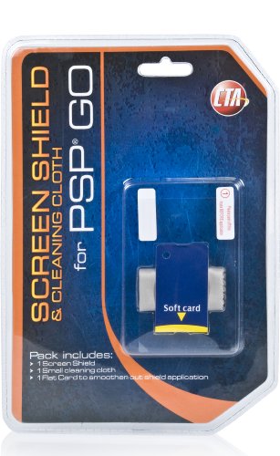 Protect and maintain the appearance of your PSP GO with this Screen Shield and Cleaning Cloth Pack from CTA Digital, Inc. This package includes two thin protective clear screen sheets, which will defend against scratches and scuffs that may occur on the PSP GO screen. Apply it with the applicator card and wipe the excessive fingerprint smudges off your PSP GO and the screen shield with the cleaning cloth. With these essential items, your PSP GO will not only look clean but also be preserved for the long run.