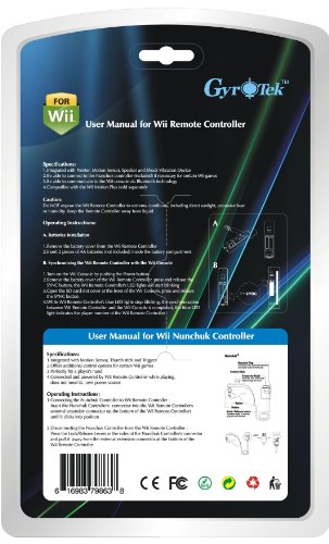 The Wii Remote Controller makes gaming as accessible to people of all ages and all abilities. Motion-sensing technology creates a multifunctional device limited only by the imagination. In a tennis game, it serves as your racket you swing with your arm. In a driving game, it serves as your steering wheel. For first-person shooters, the remote acts as your weapon that you point at an enemy. The list of potential uses goes on and on. Contoured to perfectly fit a player's hand, the Nunchuk controller goes an extra step to meet the needs of gamers. It features the same motion-sensing technology enabled in the Wii Remote controller, with an analog stick to assist in character movement. Use it to move your characters and have them perform all kinds of specific actions — whether it's throwing a pass in football or aiming a ranged weapon in an action game. The ambidextrous nature of the Wii controllers grants accessibility seldom seen in game controllers. Made by Gyrotek, sold and shipped by Gyrotek