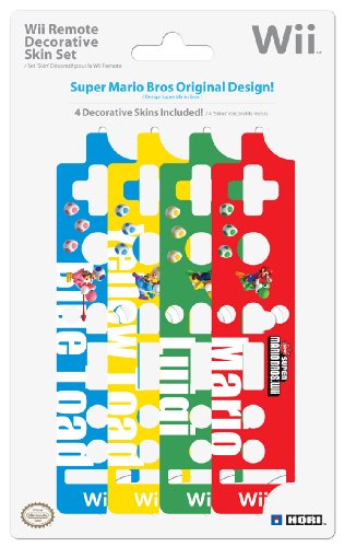 DescriptionFeatures Super Mario Bros. character design and comes with four skins in a pack. Applies onto the Wii remote using static electricity which does not leave any sticky residue and allows users to reuse the skins. The skins are also scratch resistant to prevent designs from fading. Features