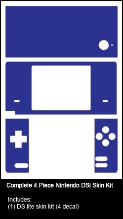 DescriptionCover up your Nintendo DSi with a custom vinyl skin accessory kit. Our Nintendo DSi skins are made from high quality vinyl that will protect your console from scratching and elements while giving you a look that is 2nd to none. The perfect compliment to an already amazing system. Impress your friends and watch them be envious of your Nintendo DSi with a custom skin kit from System Skins. Our vinyl skin kits are digitally cut from high quality premium 2 mil thick 7-year outdoor vinyl, they are not paper stickers. Our skin kits are made from the same material used by the automotive industry for vinyl graphics and lettering. It's the same material you see on most store front windows that display their hours of operation or advertise their products and services. To install our skin kits simply peel each piece off of a waxy liner backing to expose an adhesive side then you apply it to your console, just like you are using contact paper inside of a drawer or on a shelf. No glue is needed. Features