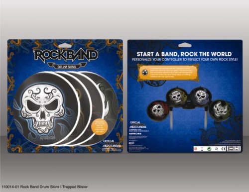 • Gamers can now customize their drumset with removable adhesive skins featuring decorated skulls from the extensive official Rockband gallery