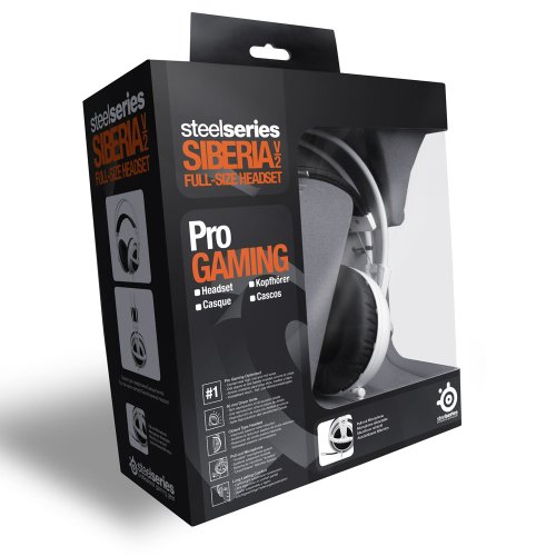 The SteelSeries Siberia v2 Full-size Headset was developed in cooperation with professional gamers to ensure that the soundscape and design would meet the demand of gamers and audiophiles. The improved multifunctional headset was designed with new thicker leather ear-cups for outside sound isolation while remaining lightweight with its trademark headband suspension for premium comfort during long periods of game play. As an upgrade from the original SteelSeries Siberia Headset, the new v2 sports a retractable uni-directional microphone for convenience in switching the headset from gaming on your PC or XBOX to listening to music on your Mp3 player.