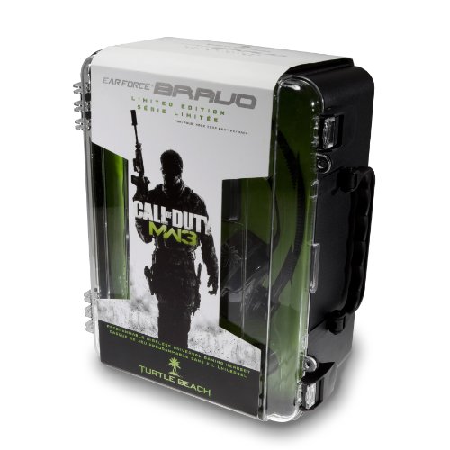 The Turtle Beach® Call of Duty®: MW3 Ear Force® Bravo (EFB) Limited Edition headset is ready for battle with programmable presets, wireless game sound, universal compatibility and a rechargeable battery. Featuring exclusive Call of Duty: MW3 customized presets, exclusive COD color scheme and textured military finish, massive 50mm speakers and full supply of bonus MW3 content, the Ear Force Bravo is built to let you Hear Everything™ and dominate.