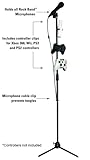 Mad Catz¿ Microphone Stand for Rock Band features a slick, easy-to-use mic clip that allows for easy insertion and removal for those moments when you want to work the crowd. Constructed of durable aluminum with a wide-stance tripod base for stability, it¿s also height-adjustable with a range of 38 to 53 inches. The stand also includes 3 unique controller clips that allow you to store your Xbox 360, Wii, PS3 or PS2 controller right on it, allowing you quick fingertip access for in-game navigation and setup. The included cable management clip will keep your mic¿s cord from getting in your way when you¿re belting out your favorite tracks.