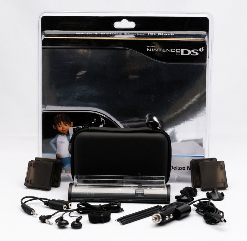 DescriptionDesigned for the new DSi. The 22-In-1 Deluxe Starter Kit includes four game cases to protect your game cartridges from dust and scratches, a pair of headphones to enjoy high-quality sounds, an audio splitter so you and your best friend can listen to music together, a car adapter to give you the power you need when you are on the road, a docking station to display and charge your DSi in fashion, four screen protectors to protect both of your screens, a camera lens screen protector to protect your camera lens, a soft protective travel case to protect your DSi, a wrist strap to carry your DSi anywhere, three replacement styluses and three finger-tip styluses to easily manage your DSi's communication features. Plus, a cleaning cloth to ensure visual clarity when gaming. Features