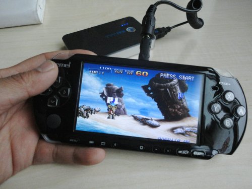 Gemei X760 + LE MP4-Player wird als PSP-Konsolen entwickelt. Unterstützen Sie den FC, SFC, MD, mit GB, GBC, GBA, NEO, die CPS1, CPS2, usw. Unterstützen10 Archive.Unterstützen Sie zwei oder mehr Personen Online-Multi-Play-Fähigkeiten.