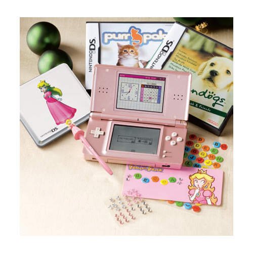 DescriptionBundle includes DS Metallic Rose, Nintendogs: Lab & Friends, Purr Pals, Princess Peach bling kit, and Princess Peach stylus & game case. Features