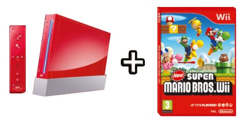 Nintendo Wii “Jubiläums Pak” – Konsole inkl. Wii Sports, New Super Mario Bros. Wii, Donkey Kong (Original Edition) + Remote Plus Controller, red by Nintendo